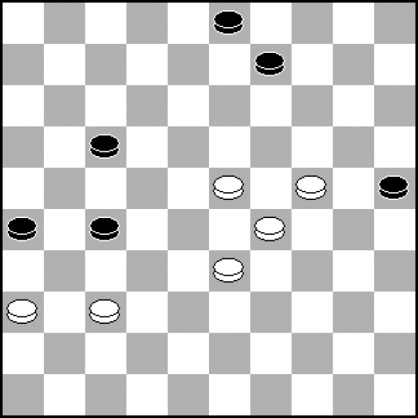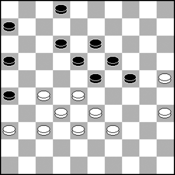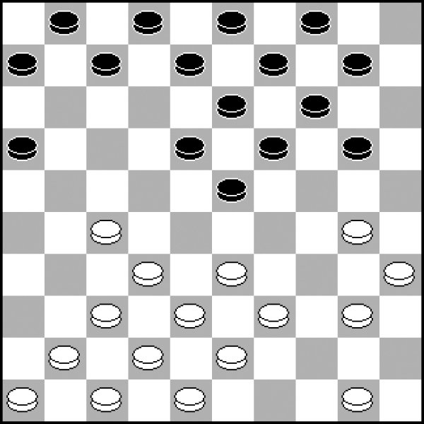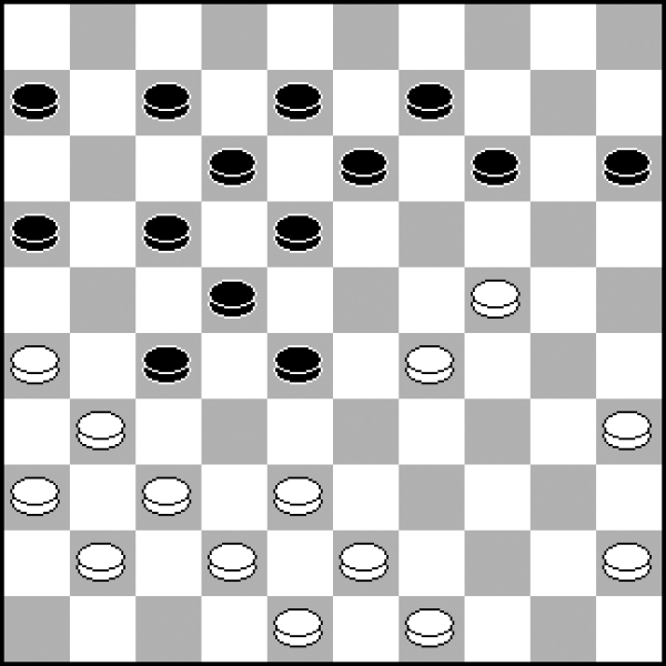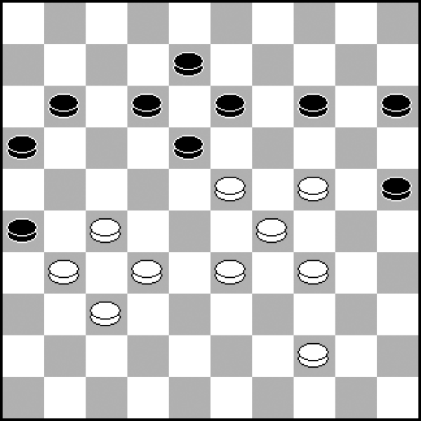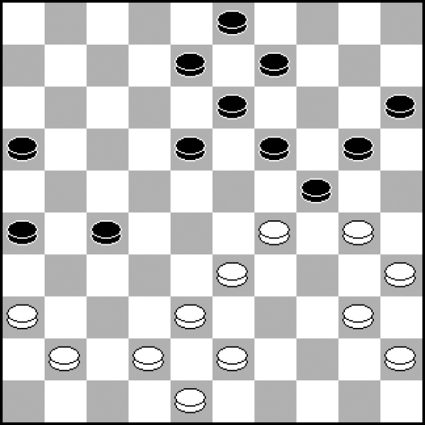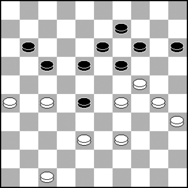 13.40-34? 13.30-25 20-24 14.33-28 8-12 15.38-33 12-17 16.42-38 17-21 z równą grą. 13...20-25! 14.30-24 19x30 15.35x24 7-12 16.24-20 Wobec groźby 23-29. 16...14-19! 17.20-15 19-24! Szybkie i zdecydowane przejęcie kontroli nad punktem 24 przy krańcowym pionie białych 15 − to daje czarnym władzę po tej stronie planszy. 18.34-29 18.33-28? 23-29! 19.34x23 18x29 To naprawdę rzadko spotykane, ale tak intensywny plan ataku działałby już w tak wczesnej fazie partii. 18...23x34 19.39x19 13x24 20.43-39 1-7 21.50-44 10-14