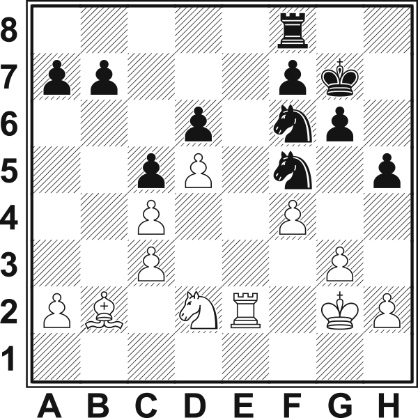 22...h4! 23.Sf1 23.Sf3? hg3 24.hg3 Sh5–+ 23...Wh8 24.Gc1 Kf8 25.Wb2 b6 26.We2  26.a4 Ke7 27.a5 Wb8 26...hg3 27.hg3 Sg4 28.Gd2?! 28.a4!? 28...Sg7! 29.We1 f5 30.a4 Kf7 31.a5 ba5 32.Wa1 32.Wb1 We8 32...Wa8 33.Wa5 a6 34.Kf3 Se8 35.Wa1 Sc7 36.Wb1 Ke7 37.Se3 Se3 38.Ge3 Wh8 39.Gg1 Kd7 40.Gf2 a5 41.Wa1 Wa8 42.g4 a4 43.gf5 gf5 44.Wa3 Wa6 i białe się poddały. 0-1