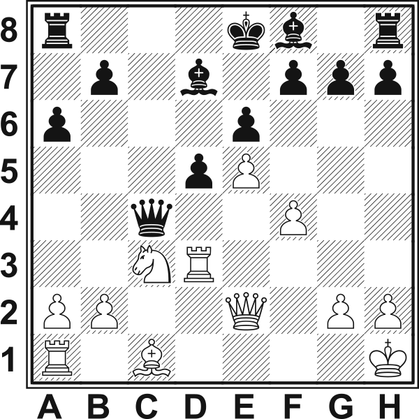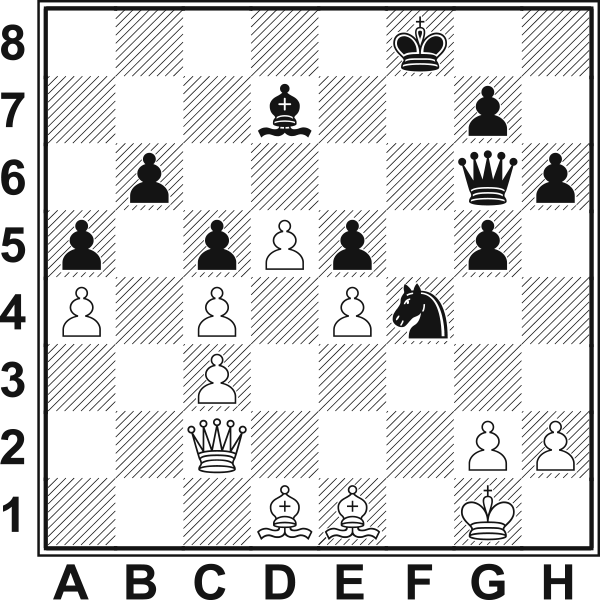 Pierwsza runda była chłodnym prysznicem dla naszych zawodników, zanotowali bowiem komplet porażek z wyżej notowanymi rywalami. Mieczysław Kaciotys, jak to ma w zwyczaju, stracił kontrolę nad centrum, próbując wdrożyć plan okrążenia przeciwnika. A to daje drugiej stronie możliwości kombinacyjne. W ostatnim posunięciu popełnił decydujący błąd, grając 8-12??