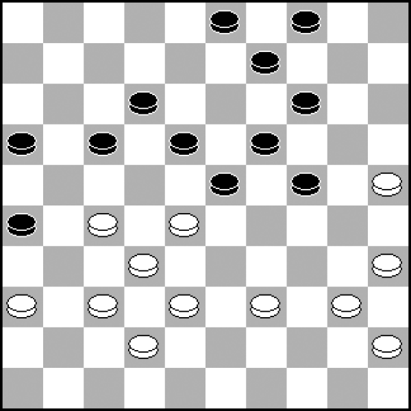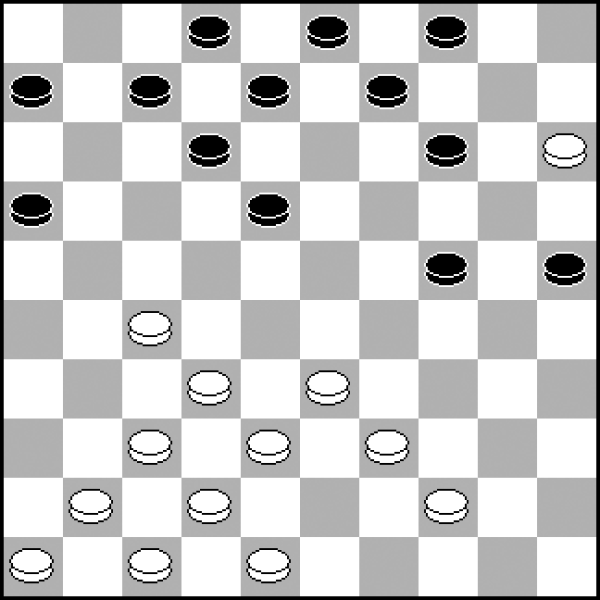 13.40-34? 13.30-25 20-24 14.33-28 8-12 15.38-33 12-17 16.42-38 17-21 z równą grą. 13...20-25! 14.30-24 19x30 15.35x24 7-12 16.24-20 Wobec groźby 23-29. 16...14-19! 17.20-15 19-24! Szybkie i zdecydowane przejęcie kontroli nad punktem 24 przy krańcowym pionie białych 15 − to daje czarnym władzę po tej stronie planszy. 18.34-29 18.33-28? 23-29! 19.34x23 18x29 To naprawdę rzadko spotykane, ale tak intensywny plan ataku działałby już w tak wczesnej fazie partii. 18...23x34 19.39x19 13x24 20.43-39 1-7 21.50-44 10-14