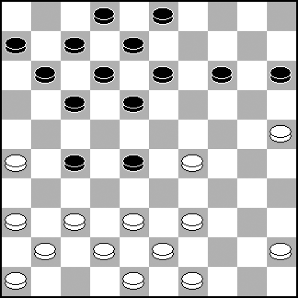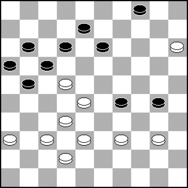 Taka pozycja powstała w końcówce. A w niej bardzo ciekawe idee. 1...32-37? Zaskakująco − remisowy ruch! Spokojnie wygrywało: 1...11-17 2.29-24 14-19 3.25-20 13-18 4.24x13 18x9. 2.42x31 27x36 3.26-21?! Dobrze kombinowałem, ale niedokładnie. Choć i tak z sukcesem. (Do forsownego remisu prowadziło efektowne: 3.29-24! 14-19 4.26-21! 13-18 5.24x13 18x9 6.21-17! 11-16 7.17x28 36-41 8.28-23 9-14 9.23-18=). 3...36-41 4.21-17 11-16 5.17x28 41-47? Kiedy przeciwnik złapał za damkę, wiedziałem, że uratowałem remis. 6.28-23! Ale po moim kolejnym ruchu skończył mu się czas i szczęśliwie wygrałem.