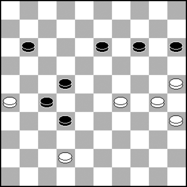 W widocznej pozycji białe mają niewielką przewagę, ale nie jest to wygrana przy odpowiedniej grze czarnych. Czy potrafisz znaleźć sposób na złapanie białej damki?